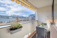The heart of this urban oasis is the spacious living room. The continuous glass frontage allows plenty of daylight to flood the space, while the covered balcony overlooks a green courtyard with trees and a fountain, offering the perfect spot for relaxing in the sun. The separate kitchen is sparklingly new and equipped with Miele appliances. A staircase leads up to the top floor, where you’ll find a spacious and bright bedroom. The balcony reveals a stunning view over the rooftops of the city, with clear vistas of the Hohensalzburg Fortress, Mönchstein Castle, the charming Müllner Church, and Salzburg’s mountains beyond. The well-maintained bathroom with a bathtub is pleasantly bright thanks to its window. An additional room with a balcony and ensuite dressing area is versatile and can be used as a home office or guest room. HWB 44