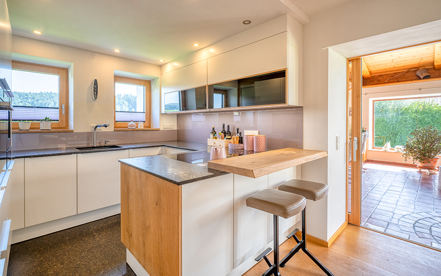 This elegant and tastefully appointed home was comprehensively modernised in 2018. The rustic tiled stove with its inviting built-in bench is a central feature between the comfortable living space and the welcoming dining area. The bespoke kitchen in white and anthracite is equipped for serious cooking, but also perfect for a quick espresso at the bar. The airy conservatory with its open fireplace and the beautifully landscaped garden with a terrace are spaces to truly unwind – with sweeping views of the Osterhorn and Tennen mountains, and the distinctive Barmstein peaks.