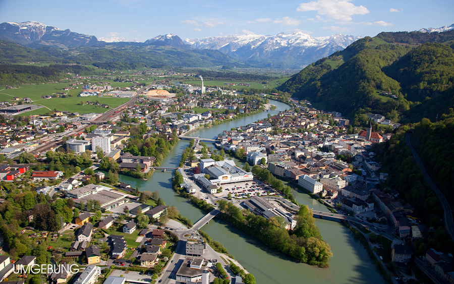 The location offers a host of advantages: the tranquillity of a rural setting combined with short distances to all the town’s amenities. In Hallein, with its charming medieval lanes, you’ll find a wide range of shops, restaurants and cultural offerings, along with excellent bus and rail connections. The area also boasts fantastic leisure opportunities, including panoramic hikes that stretch between Austria and Bavaria.