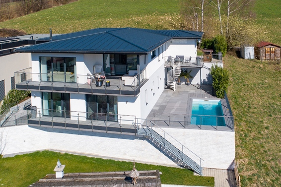 Topmodern, offen und freundlich präsentiert sich dieses neuwertige Haus mit inspirierendem Blick auf die Berge und den Mondsee. Großzügige Terrassen und der Pool laden zu einer Auszeit in der Sonne ein.