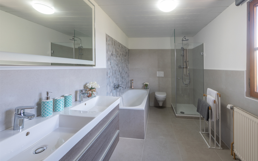 Im Obergeschoß befinden sich zwei behagliche Schlafzimmer mit modernen Bädern en suite und Balkonzugang sowie eine entzückende Dachkammer. Das Untergeschoß beherbergt neben einem großen Waschraum und Lager auch einen Wellnessbereich mit Sauna und Dusche sowie ein uriges Gewölbezimmer, das sich als Partyraum/Weinkeller anbietet. HWB 262