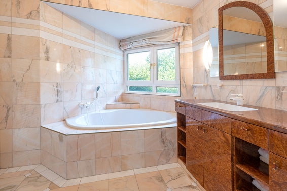 Dieses liebevoll und durchdacht geplante Haus begeistert mit seinen lichtdurchfluteten Räumen und dem besonderen Wohlfühlambiente. Die vielen Fenster geben beinahe von allen Zimmern den Blick auf das beeindruckende Tennengebirge und in den zauberhaften Garten frei. Im großen Wohnzimmer mit Kaminofen und Wintergarten ist Entspannen angesagt. Die stilvolle Bulthaup-Küche mit angrenzendem Esszimmer erfreut mit Zugang auf einen lauschigen Terrassenplatz, der zum Dinner al fresco einlädt. Auch das Schlafzimmer punktet mit großen Fenstern und Blick ins Grüne, von der Eckwanne im edlen Bad können Sie sogar auf die Burg Hohenwerfen blicken.