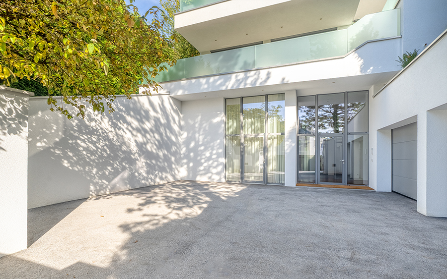 Der Panoramaglaslift bringt Sie vom Entrée bequem in alle Stockwerke, mindestens genauso ein Blickfang sind aber auch die eleganten Treppen mit gläsernen Geländern – zusammen mit den XL-Glaselementen, die die traumhafte Aussicht in allen Räumen gekonnt in Szene setzen verleihen sie der lichtdurchfluteten Villa eine offene, luftige Wohlfühlatmosphäre. Im ersten Obergeschoß befindet sich ein eigener Bereich für Kinder oder Gäste, mit zwei Schlafzimmern und einem modernen Bad, eine Ebene darüber der weitläufige Wohn-/Essbereich mit Zugang auf die Pool-Terrasse. Der Masterbereich im Dachgeschoß mit herrlicher Panoramaterrasse ist Ihr Rückzugsort und Logenplatz – dank großflächiger Verglasungen genießen Sie die grandiose Aussicht auch vom Schlafzimmer mit Ankleide en suite und selbst im edlem Bad mit Wanne und Walk-in Regendusche. HWB 56