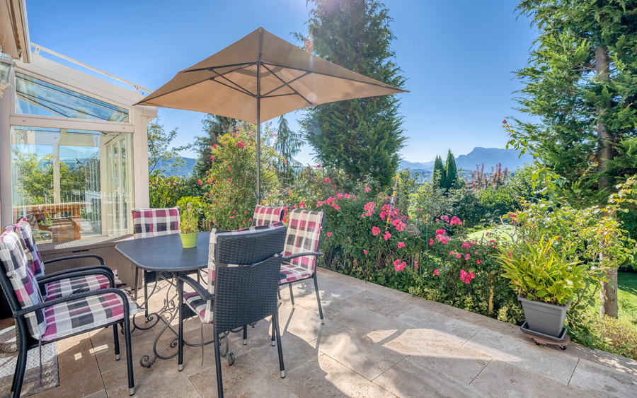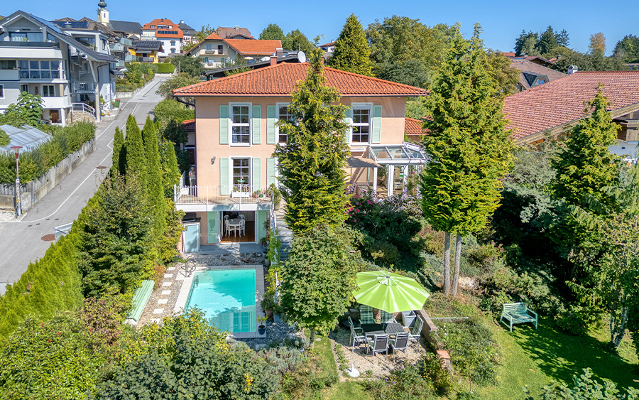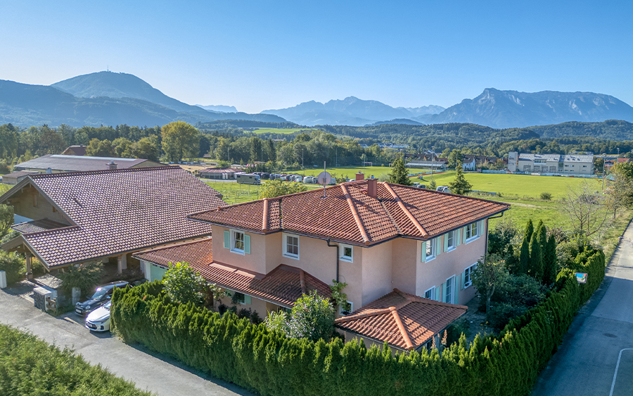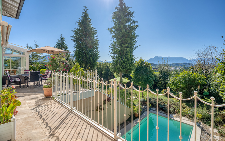 Dieses zauberhaft mediterran anmutende Familienanwesen in erhabener Hanglage in Elixhausen wird Sie begeistern! Die grandiose Bergkulisse, das großzügige Wohnkonzept inklusive Wintergarten und Panoramaterrasse, herrlich viel Platz für private Rückzugsräume und eine reizvoll blickgeschützte Gartenoase mit Pool. Ein Haus zum Zuhause ankommen, in dem Sie auf Anhieb Gemütlichkeit umfängt!