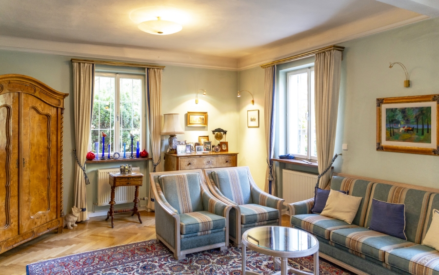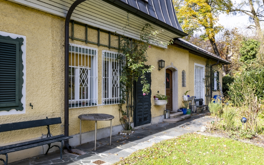 Das historische Haus, erstmals ca. 1880 erwähnt, wurde im Laufe der Zeit erweitert und zuletzt mit dem DG-Ausbau adaptiert. Der zentrale Eingangsbereich im ursprünglichen Trakt führt ins Herzstück zum gediegenen Wohnsalon mit Fischgrätparkett und Kachelofen – über eine Flügeltüre gelangen Sie in den bezaubernden Garten. Ans Esszimmer grenzt die Landhausküche mit Außenzugang. Zwei Schlafzimmer und zwei Bäder komplettieren das Ensemble auf dieser Ebene. Im OG mit herrlichem Blick in den Garten und auf die herrschaftlichen Villen der Nachbarschaft befinden sich 3 große, individuell nutzbare Zimmer und ein Bad – es könnte einfach zu einer eigenen Wohneinheit umgestaltet werden. Die 3-Zimmer Einliegerwohnung (EG) im Anbau begeistert mit 3 m luftiger Raumhöhe: ein gemütliches Wohn-/Esszimmer mit Einbauküche sowie zwei Schlafzimmer mit je einem eigenen Bad. HWB 119.