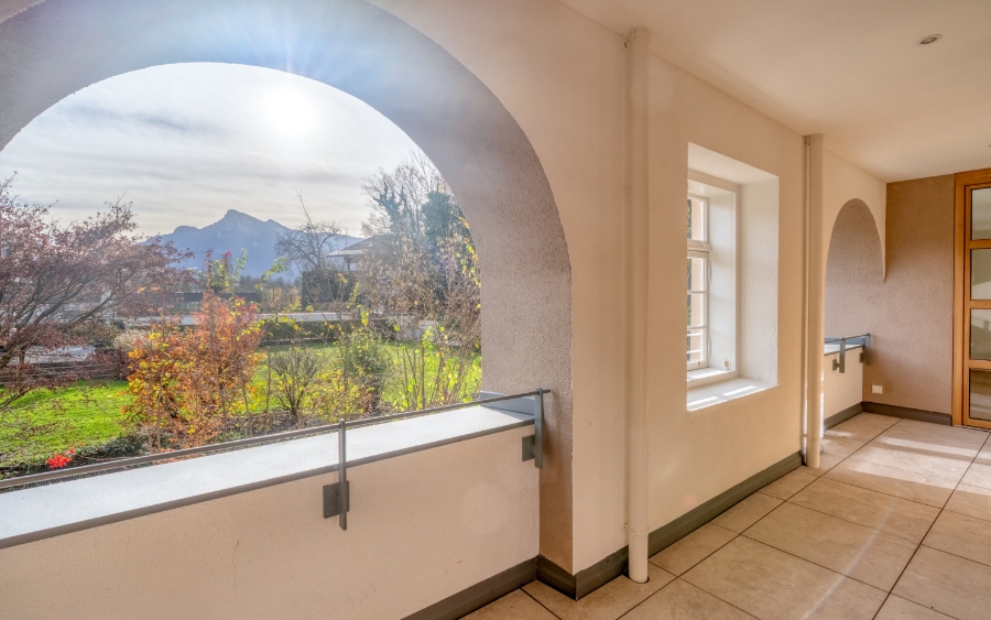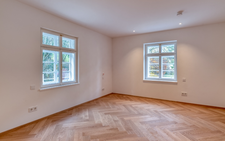 Erstbezug nach Revitalisierung! Die zauberhafte, mit dem Aufzug barrierefrei erreichbare Wohnung im 1. OG begeistert mit historischen Kastenfenstern und einem charmanten Arkadenbalkon, von dem Sie einen Premiumblick bis zum Untersberg und zum Tennengebirge genießen.
