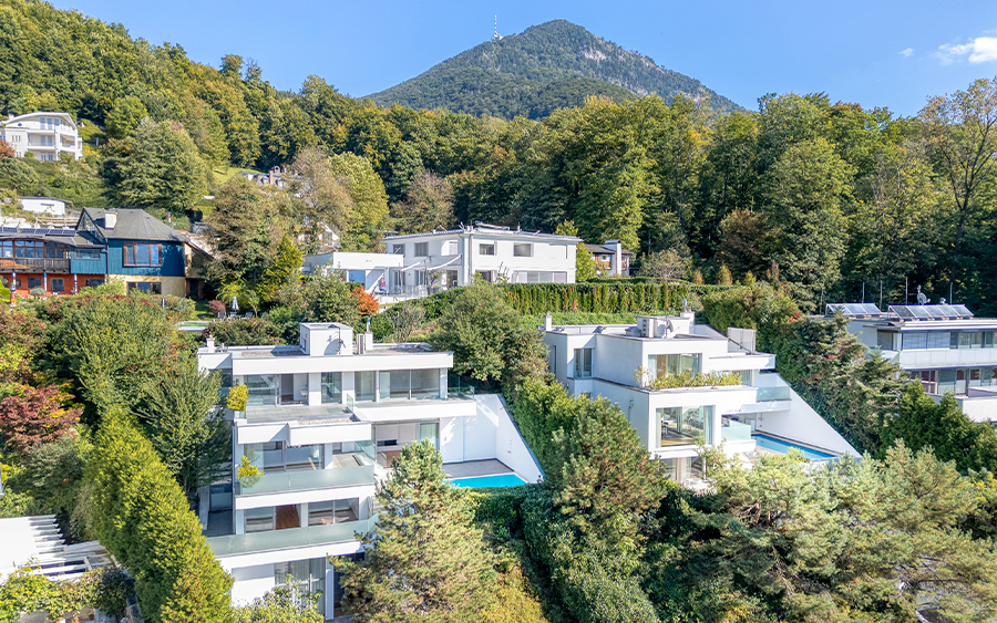 In herrlich ruhiger Lage am Fuße des Gaisbergs erwartet Sie diese moderne Designvilla, die mit etlichen Ausstattungshighlights und unwiederbringlichen Ausblicken auf die Stadt Salzburg, die weltberühmte Festung und die imposante Bergwelt begeistert.