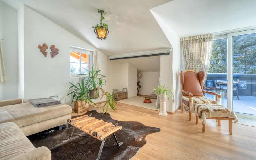Der ideale Platz für Ihr persönliches Refugium! In einer herrlichen Aussichtslage inmitten der idyllischen Natur auf der Südseite des Gaisbergs liegt diese zauberhafte Dachetagenwohnung mit reizvollen Postkartenblick-Terrassen und einer entzückenden Panorama-Außensauna, wo Sie die absolute Privatsphäre und die Naturverbundenheit in aller Ruhe genießen können. Mitten im Grünen und trotzdem nur 10 Minuten von Salzburg entfernt!