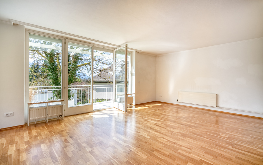 Mittelpunkt dieses charmanten Refugiums ist die weitläufige, lichtdurchflutete Living Area. Die tipptopp gepflegte Küche ist separat und mit Miele-Geräten ausgestattet, Hobbyköche können sich hier frei entfalten. Bezauberndes Highlight ist der überdachte Sonnenbalkon, wo Sie bei traumhaftem Panoramablick auf Untersberg, Watzmann und Kapuzinerberg entspannen können. Auch das Schlafzimmer präsentiert sich freundlich hell, im feinen Bad mit Wanne gelingt der gute Start in den Tag.
